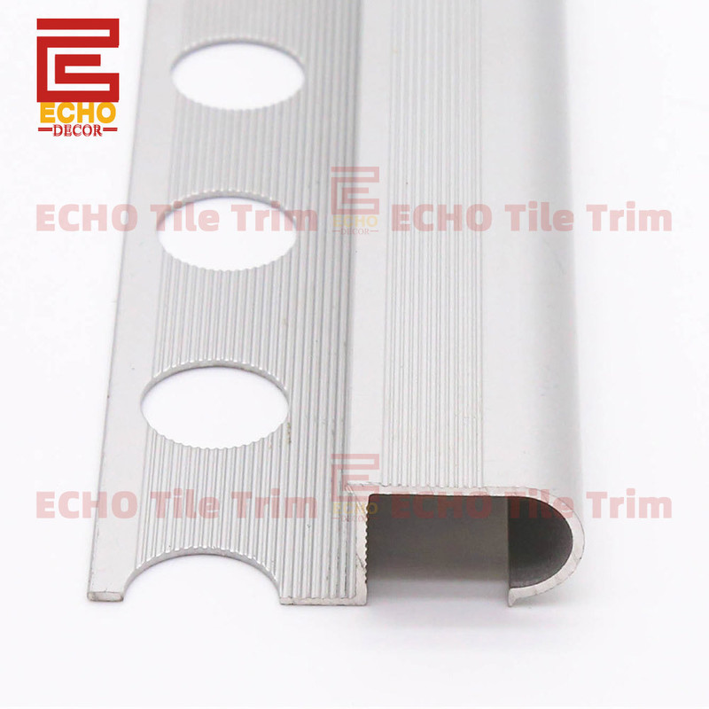 Proteja suas escadas com o Rodapé de Escada Antiderrapante com Borda Arredondada em alumínio prateado elegante. Este acabamento de rodapé de escada combina tecnologia antiderrapante avançada com um design de borda arredondada elegante, proporcionando segurança e durabilidade para escadas de alto tráfego. Degrau antiderrapante, enquanto a construção em alumínio protege as bordas do seu piso contra danos. Ideal para espaços residenciais, comerciais e públicos, ele adiciona um toque moderno à sua escada, evitando acidentes.